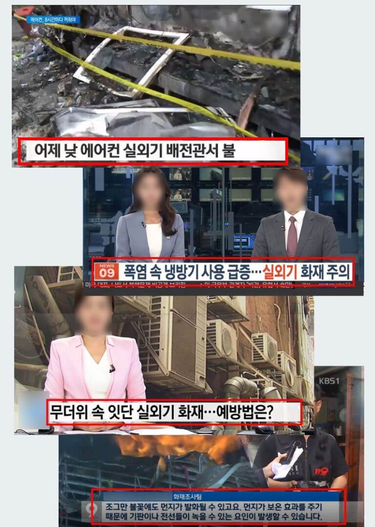이런 아찔한 사고를 막기 위해서라도 여름철 사용전에 청소를해서 먼지를 제거해 주시고 에어컨 실외기 커버를 설치해서 추가적으로 먼지가 쌓이는 걸 막아주어야 화재 사고를 방지 할 수 있습니다.