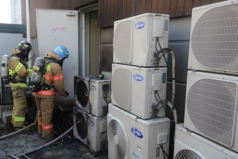 실외기를 오래 가동하게 되다 보면 굉장한 열이 발생하고 스파크가 발생할 수도 있습니다.