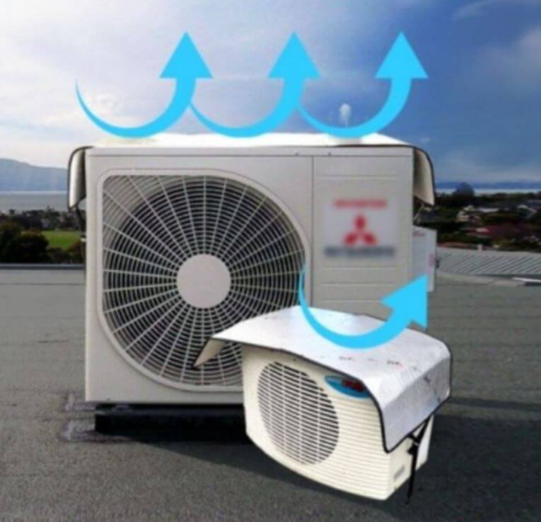 에어컨 실외기에 커버를 설치해서 그늘을 만들어 주게 되면 실외기에 직접적으로 받게되는 햇빝이 반사되어 실외기의 온도가 올라가지 않게 됩니다.