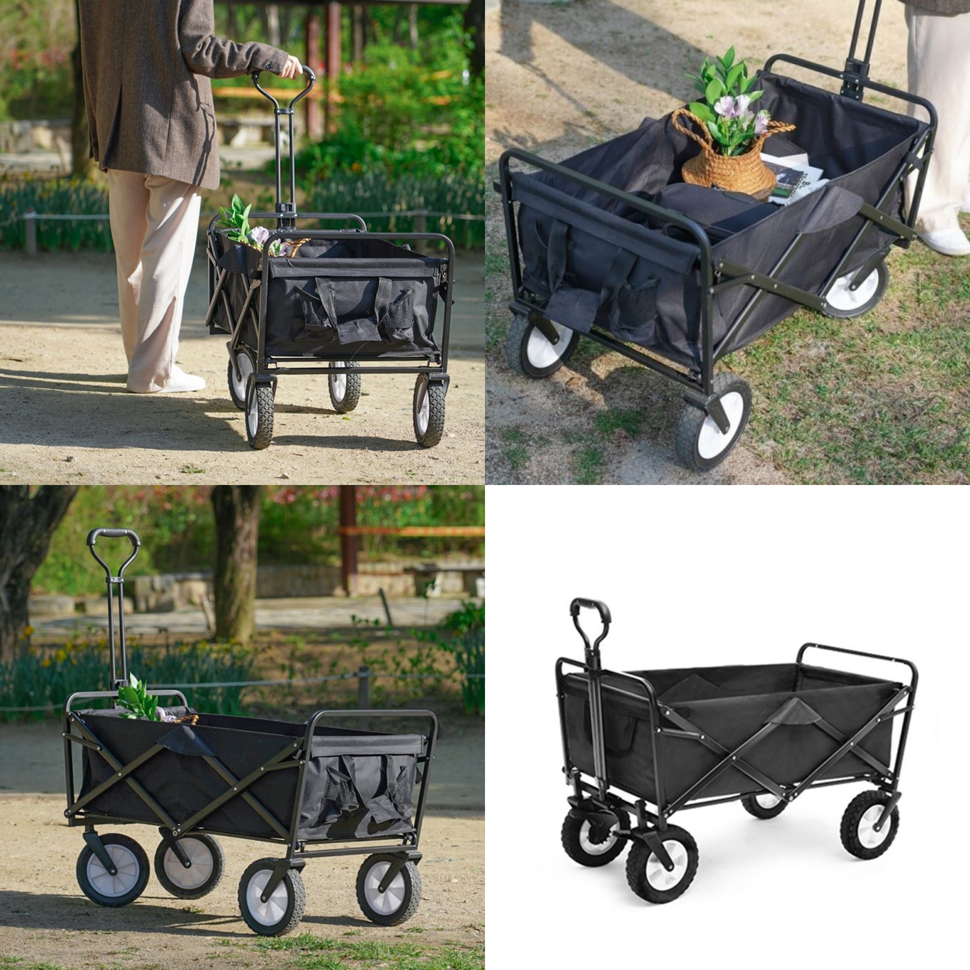자연스럽게 폴딩한 후 차에 싣고 나서 목적지에 와서는 가볍게 펴주기만 하면 웨건 형태로 만들어지게 됩니다.