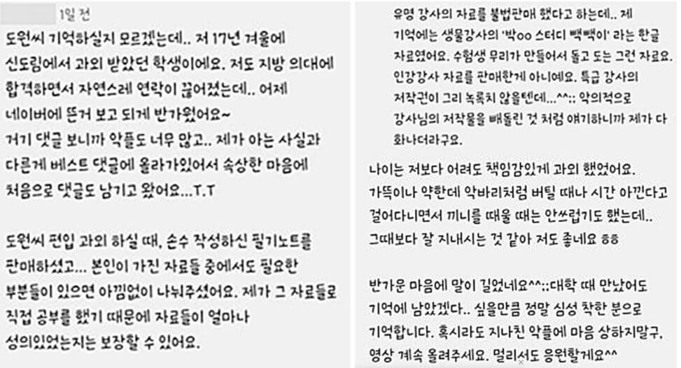 댓글을 단 이는 "2017년에 클레어에게 과외를 받았다면서 덕분에 지방 의대에 합격했다며 이도원에 대한 논란은 사실이 아니라고 주장했습니다."