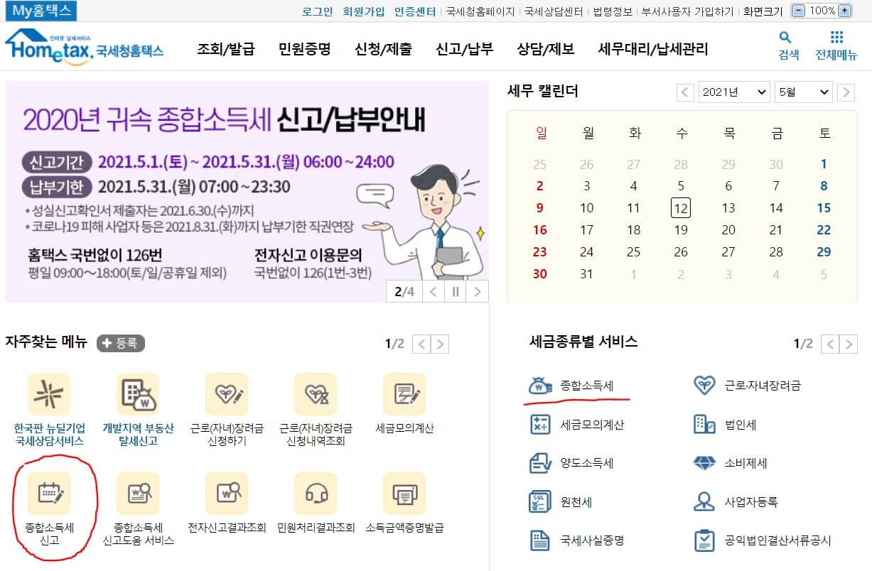 종합소득세 계산과 환급 금액 계산은 국세청 홈택스에서 가능합니다.