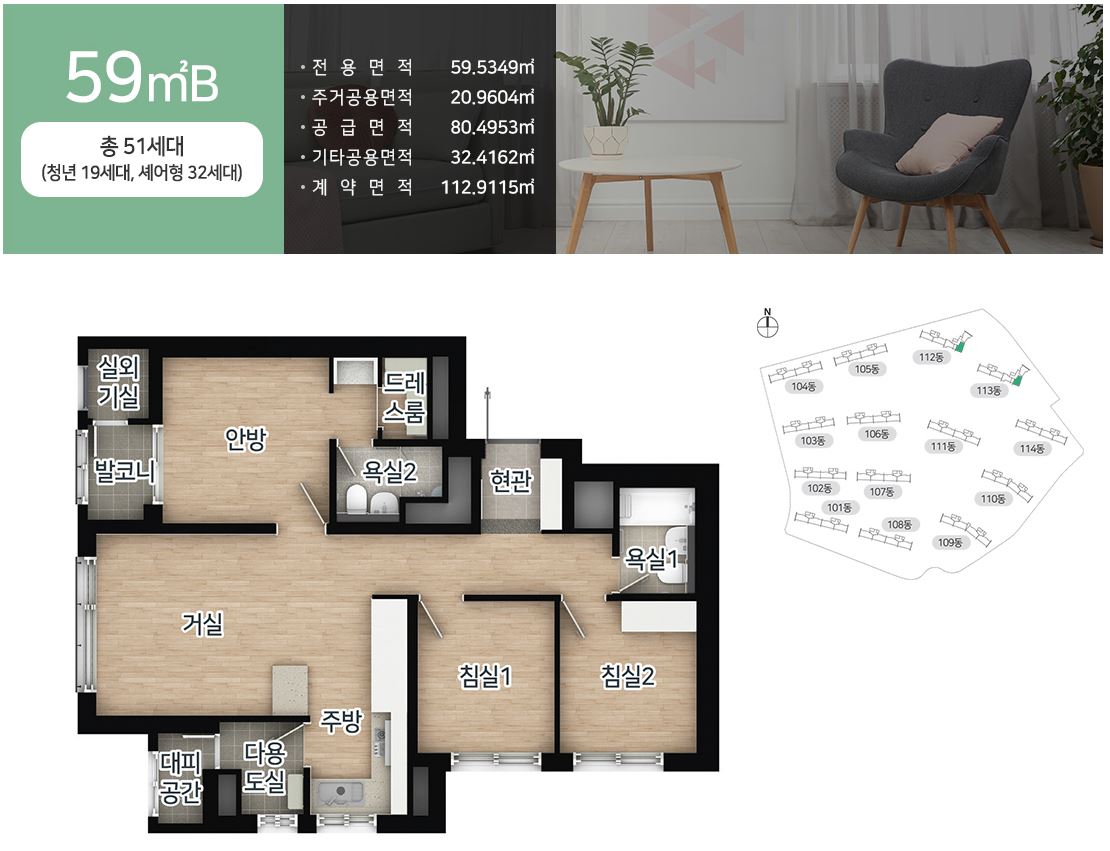 59B 타입은 청년, 셰어형 특별공급으로만 공급되며, 일반공급으로는 공급되지 않는다고 하니 참고하세요.