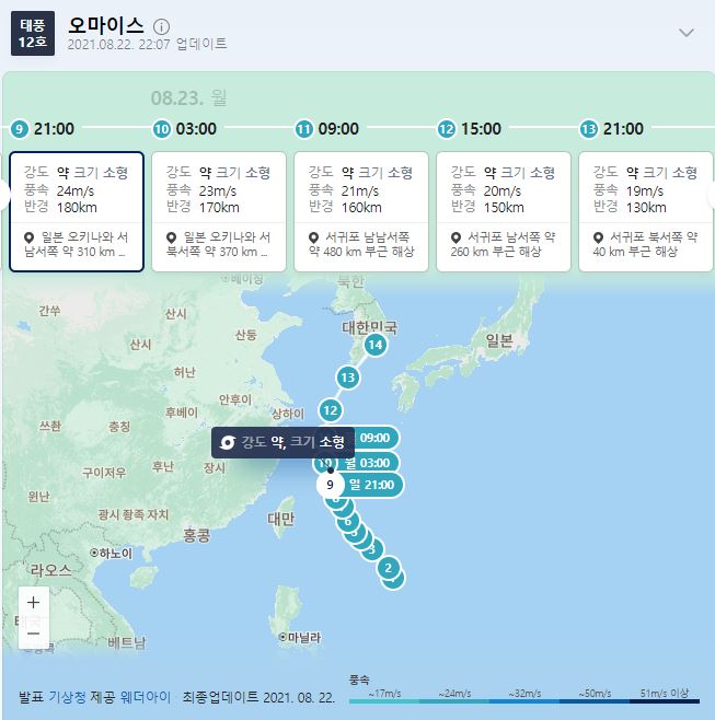 2021 12호 태풍 오마이스 경로 , 뜻 파악