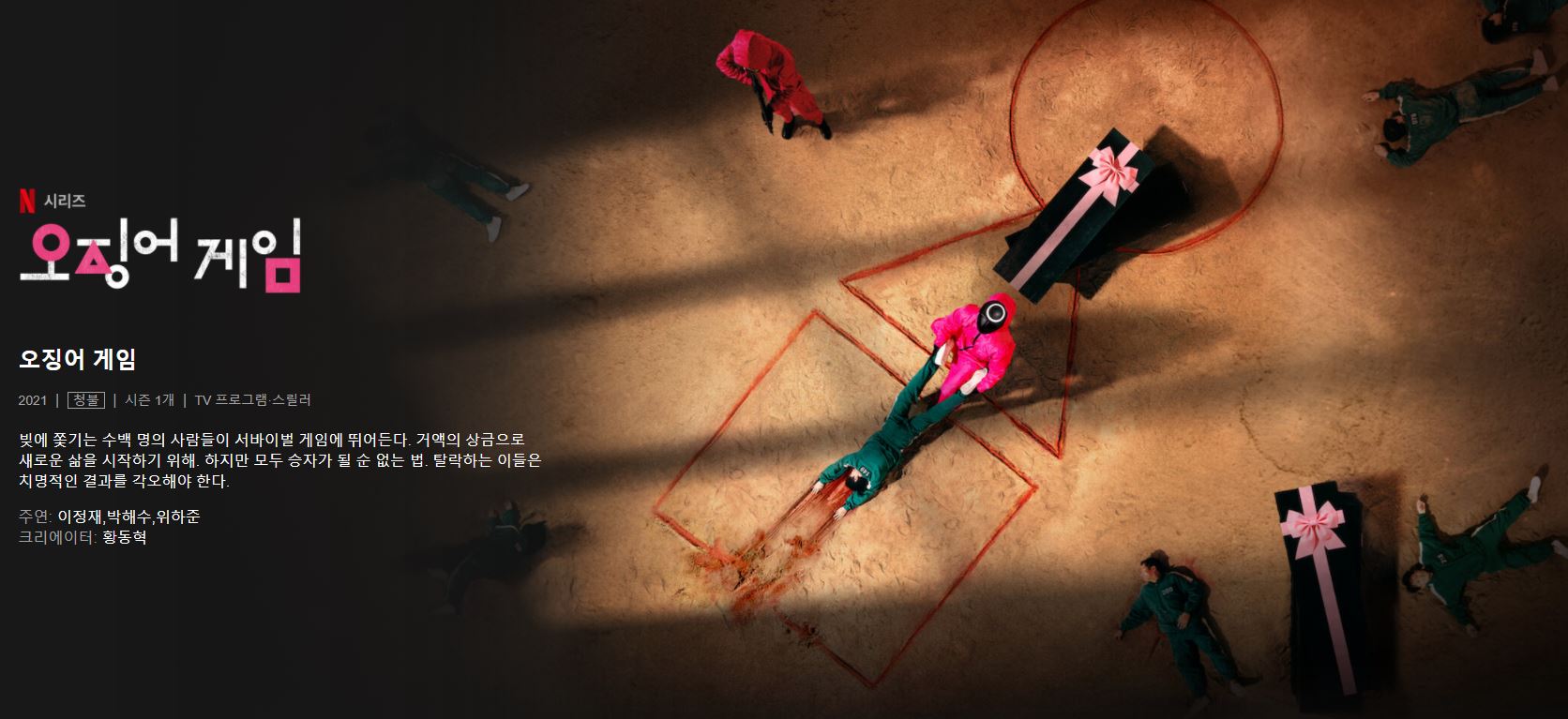 '오징어 게임'은 의문의 서바이벌에 참가한 사람들이 상금 456억원을 걸고 극한의 게임에 도전하는 이야기를 그렸다.