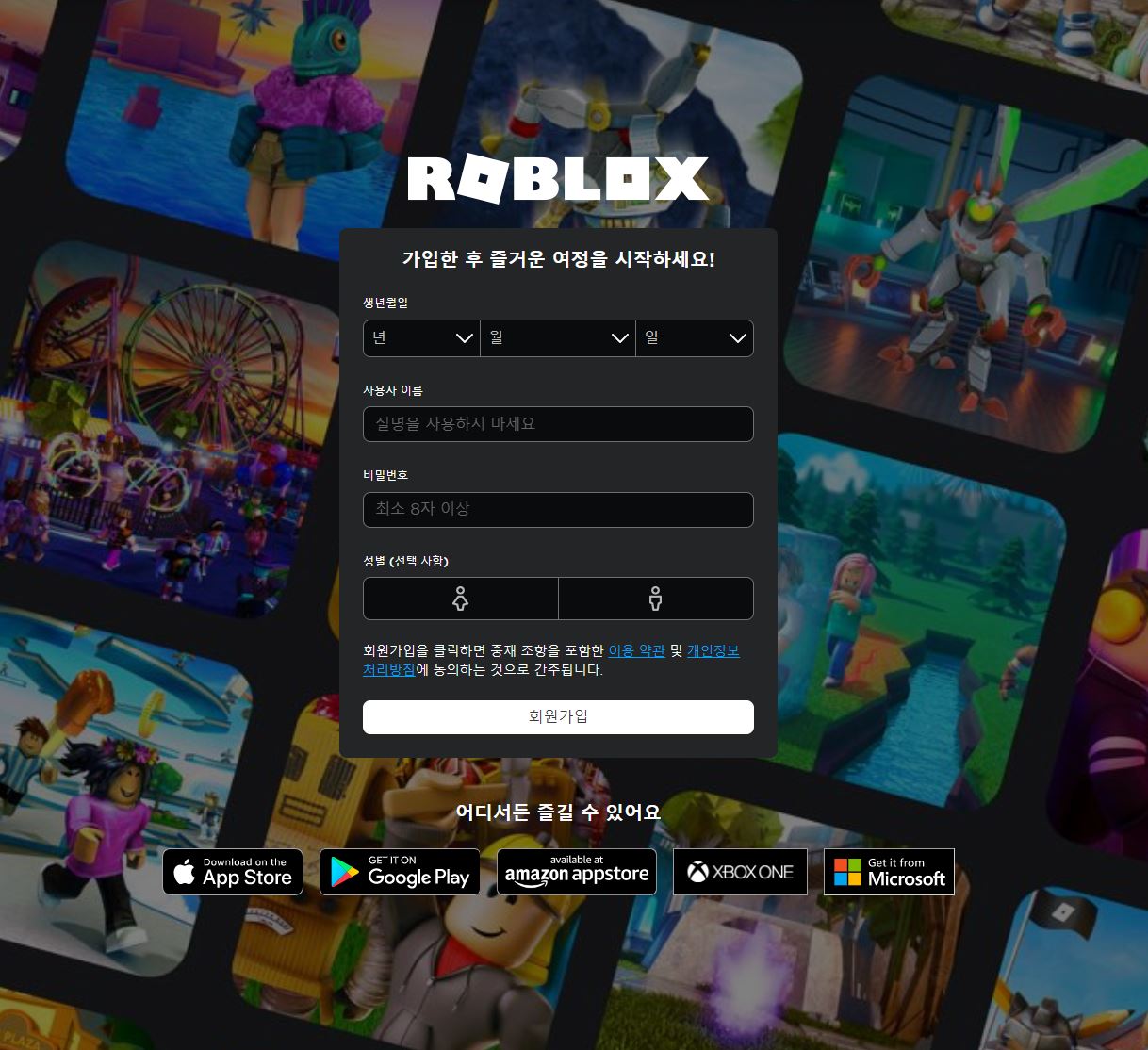 연결이 되면 생년월일, 이름, 비밀번호를 입력하고 회원가입을 한 후 게임을 즐기시면 됩니다.