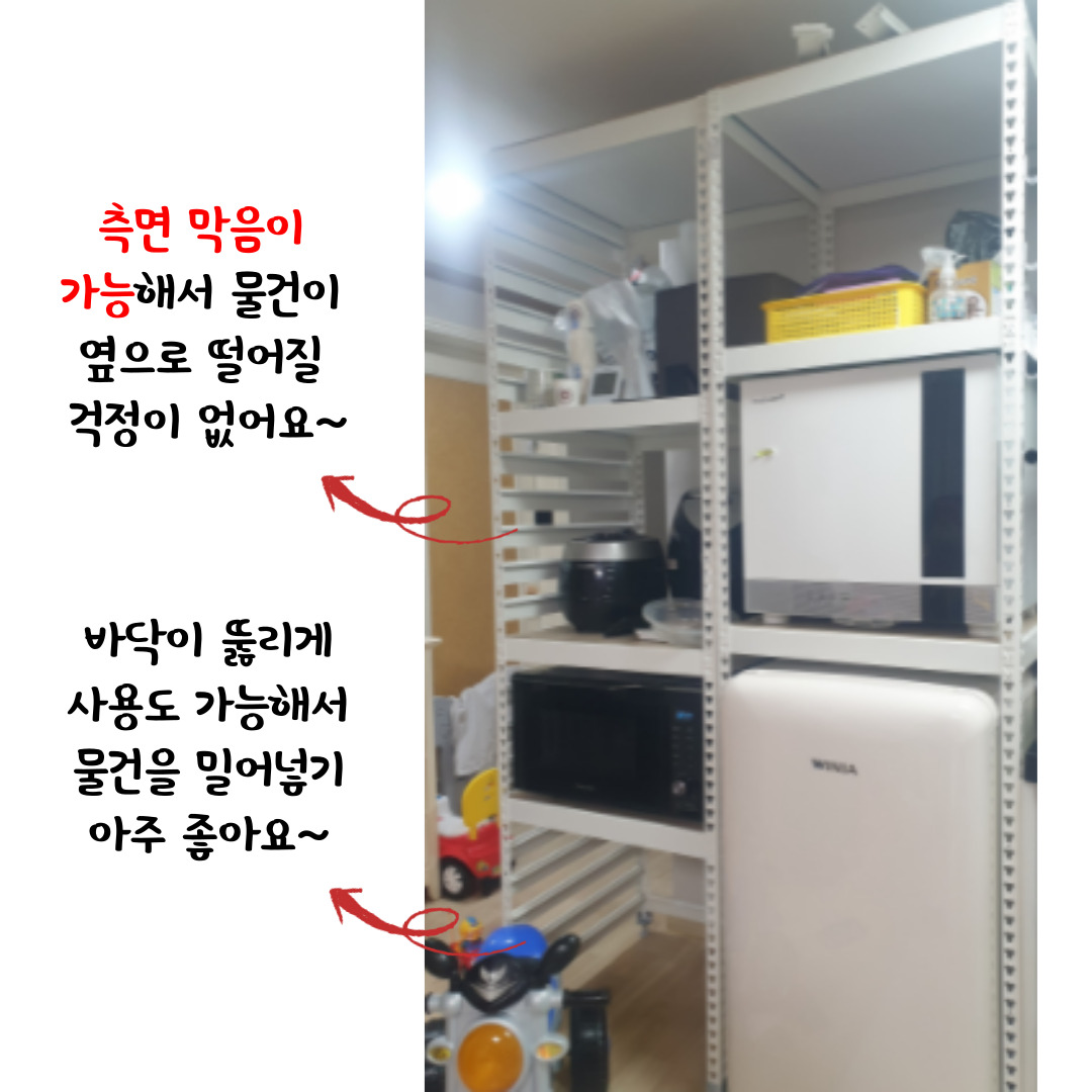 기존 조립식 앵글은 사방이 뚫려있어 수납의 편리함은