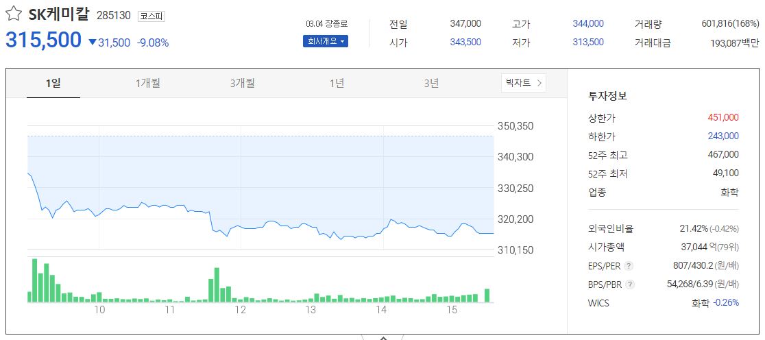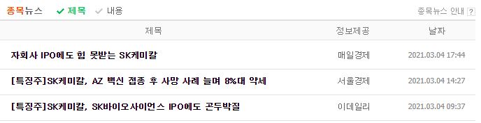 오늘 분석해볼 종목은 바로 SK케미칼 입니다.