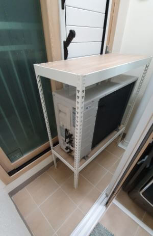 바로 이렇게 실외기 위, 아래로 추가 선반을 설치해서 부피가 큰 계절 용품 또는 캠핑 용품, 생활 용품등을 알뜰하게 보관할 수 있습니다.