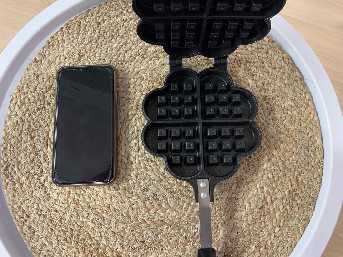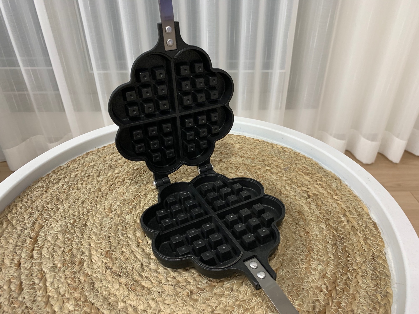 레벤호프 와플팬은 클로바 모양의 귀여운 팬 그리고 안전하게 잡을 수 있는 긴 손잡이로 구성되어 있습니다.