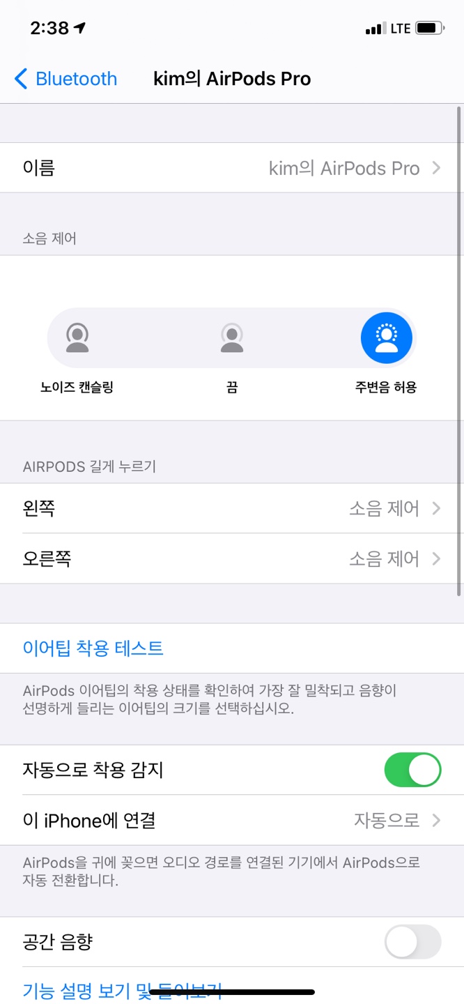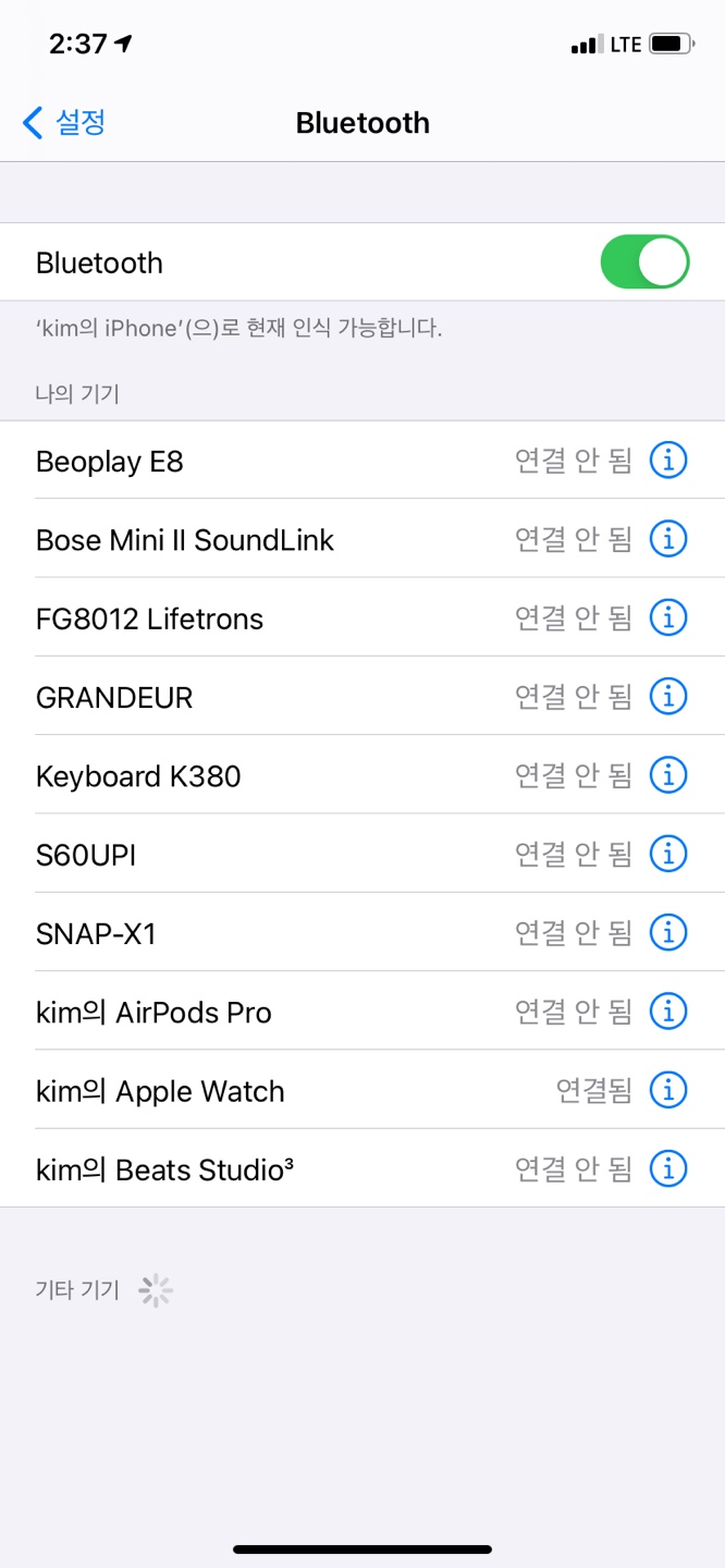 이제 에어팟과 아이폰을 다시 페어링 해보면 바뀐 이름으로 사용이 가능합니다.