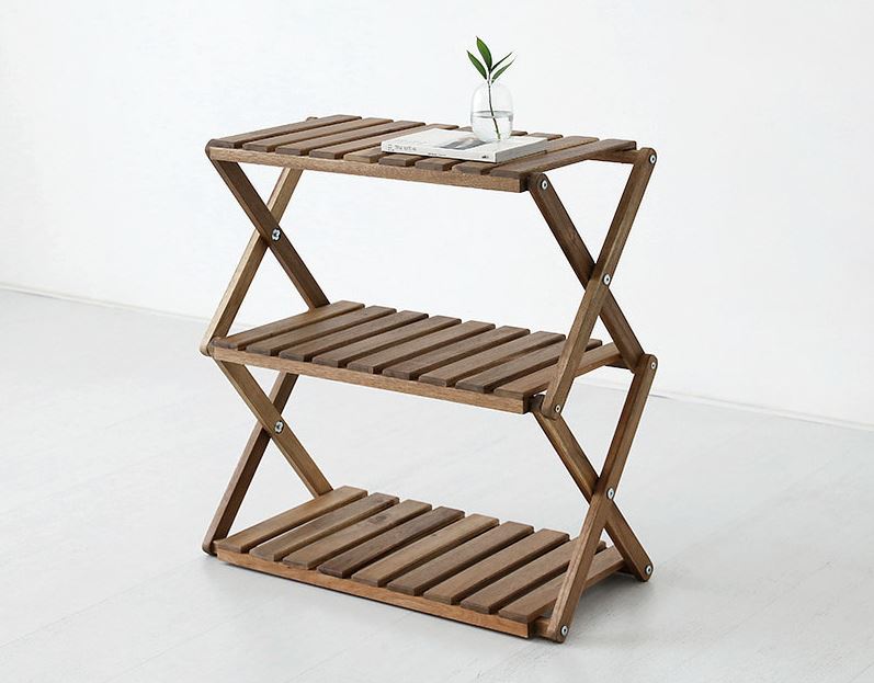 마켓비 우드 쉘프는 접이식 프레임으로 이동과 보관이 자유롭습니다.