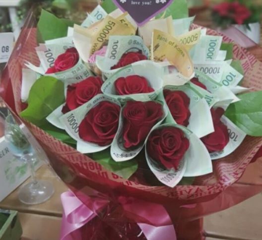 돈 나오는 케이크도 있고 돈 꽃다발도 있고 돈과 관련된 제품이 굉장히 많습니다.