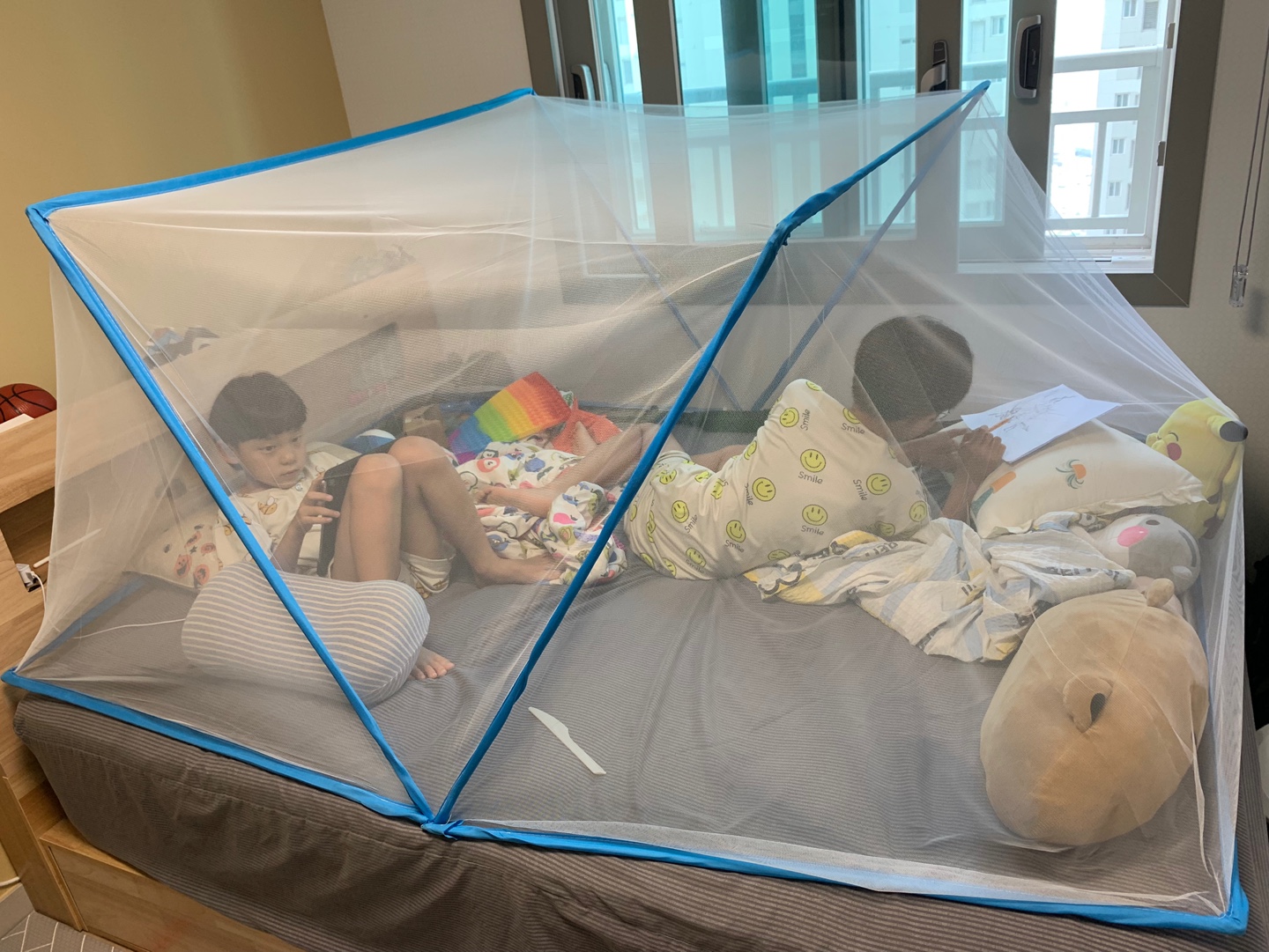 낮에도 저렇게 모기장 안에서 안나오네요
