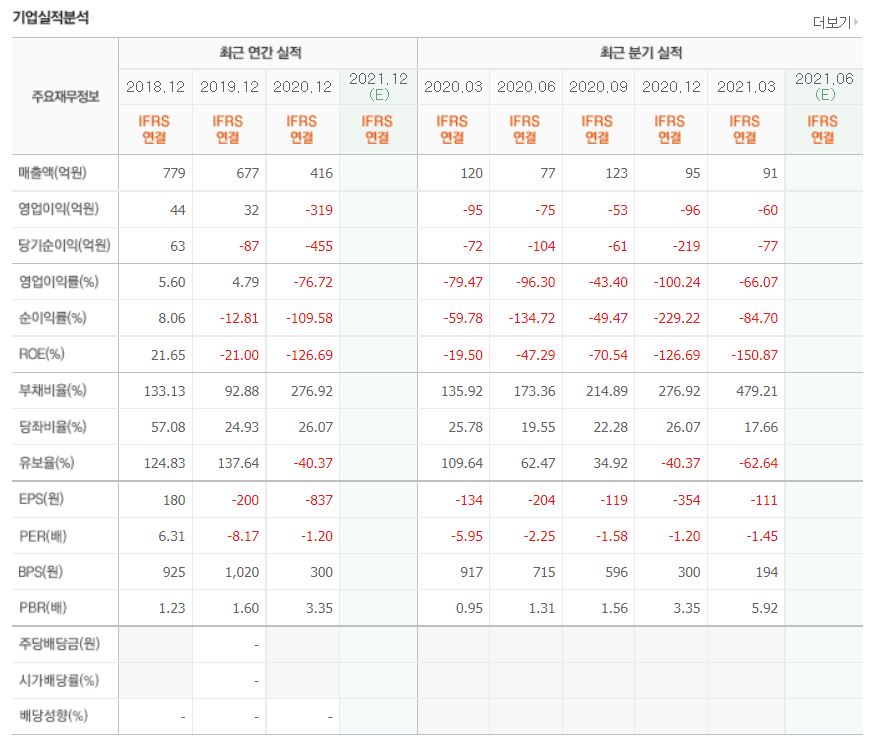 PER / EPS(2021.03) : N/A / -796원