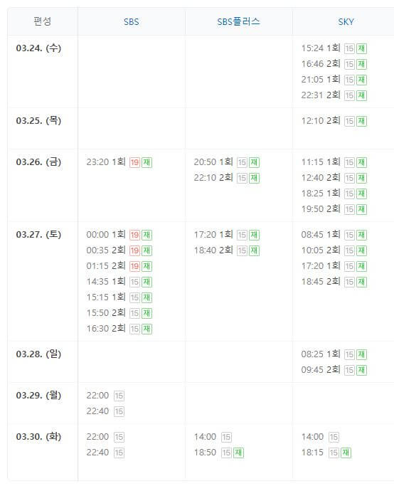 재방송 시청 시간표를 올려드리시 챙겨보세요.